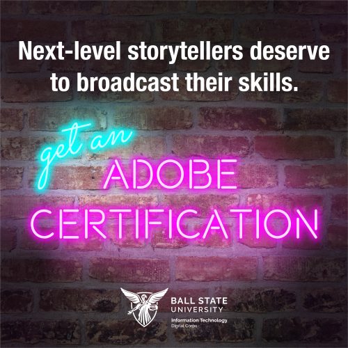 Ball State students, through an Information Technology initiative, now have the opportunity to take Adobe Certification Exams and practice tests throughout the year. Adobe Certification Exams are a great way to validate technological skills within the Adobe Creative Suite.