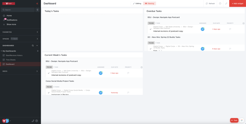 The Digital Corps has used a few tools to track work time and progress on projects. For a few years, Basecamp was our go-to platform to assign teams to tasks and plan out project schedules.