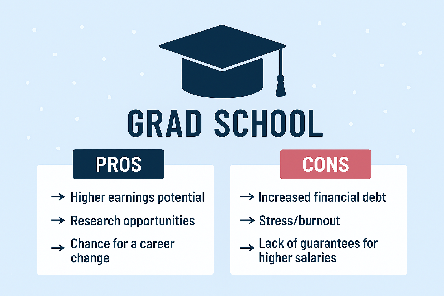 Choosing between grad school and jumping straight into the job market isn’t easy — both paths have their benefits and challenges. To help you weigh your options, here’s a quick pros and cons list based on information from Barton Careers.