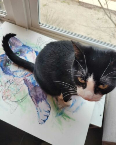 Of course, once the Fall semester started, she was exposed to over fifty students. She learned to adapt to the Corps by sitting in quieter corners of the office and talking to other introverts. “It has gotten better,” says Hunchman, “simply because I’ve learned to adjust where to put my social battery and where to not put my social battery. So if I’m at that point of the day where I’ve been here a while, and I’ve been talking to people all day, I’ll be like, Okay, it’s time for me to go home and recharge.” Even at home, Hunchman doesn’t push herself to mirror an extrovert. She gives herself space by ordering groceries online, instead of draining her social battery in the store, and she decompresses by painting, listening to music, and playing with her cat, Tulip.