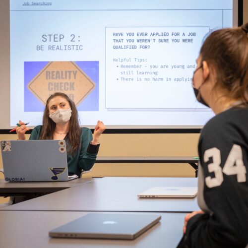 Communication Specialist, Bridget Junker, leads a Corps Convo on finding a job.
