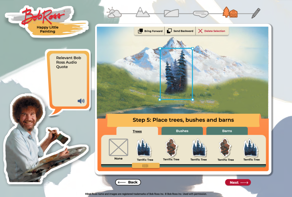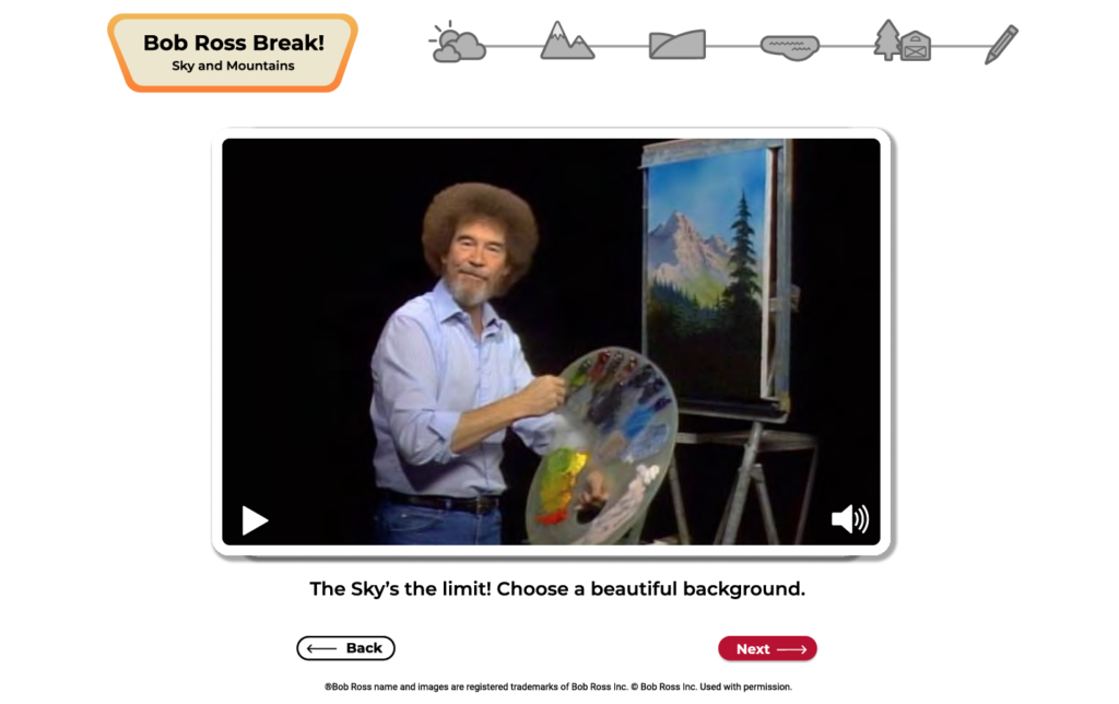 The beloved landscape painter rose to prominence as a TV personality and re-emerged as an internet phenomenon for a new generation. Bob Ross Inc. gave Digital Corps students the creative freedom to help bring his artwork into the digital age. Tasked with promoting Bob Ross’s positivity, the team looked to the acclaimed PBS series The Joy of Painting for inspiration.