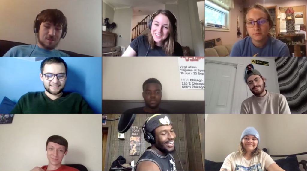 Heilman reflected on how maintaining a routine helped him stay motivated to work on his writing, saying; “It’s just doing it every day. Finding motivation is difficult, but if you get into a habit, then it’s harder to quit.” Corps employees are encouraged to maintain a schedule through bi-weekly project meetings where they all are able to share their progress. These meetings provide a routine that encourages them to make progress, but it also allows students to interact and learn about one another’s creative projects. Digital Corps students join a Zoom conference call to discuss their progress on personal projects for the Corps-antine Diaries Project.