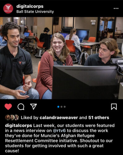 Megan Barry, Ball State alumna and former account manager for Twitter at The Digital Corps explains that “Being given the opportunity to learn and run social media accounts at the Corps helped me as a professional in social media management. The Corps gave me the skillsets necessary to help a business’s social network grow.”