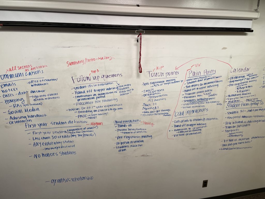 Currently, the User Experience Team’s main project is Student Journey Map. This project is for Ball State University’s Student Success Executive Committee and is focused on mapping the student experience from freshman to senior year. The goal is to pinpoint the things that went well for students and the things that did not during their time at Ball State. Sprout explains that “We’re just getting started. We’re doing a lot of interviews with the departments. We’ve done upper level advising. We’re going to do freshman advising. And we’re also going to do focus groups with students asking questions about those departments.”